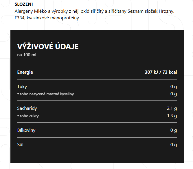 Obsah alkoholu: Standardní obsah alkoholu – do 12,5 % obj.